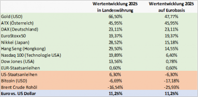 Einmal mehr zeigt der Rückblick auf das Jahr 2025, dass man beim Ausblick zu Jahresbeginn wohl andere Ergebnisse erwartet hätte. Wenn man als Anleger alles auf ein Pferd bzw. einen Markt setzt